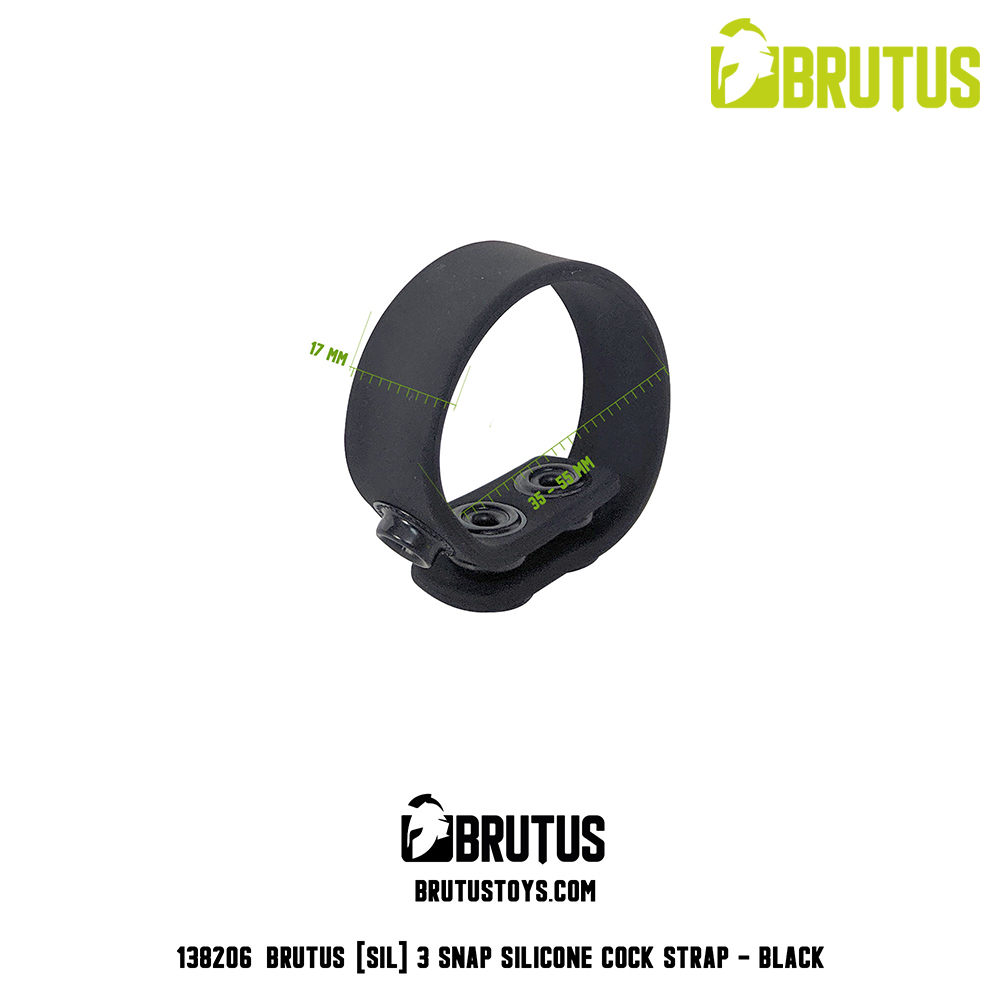 Change things up with the 3 snap silicone cock strap made by Brutus. This cock strap made from premium silicone gives you three different sizes with only one ring. The easy to use push buttons allow you to quickly change the size of the ring into 35mm, 45mm, or 55mm and the premium silicone will make this cock strap feel like your natural second skin.