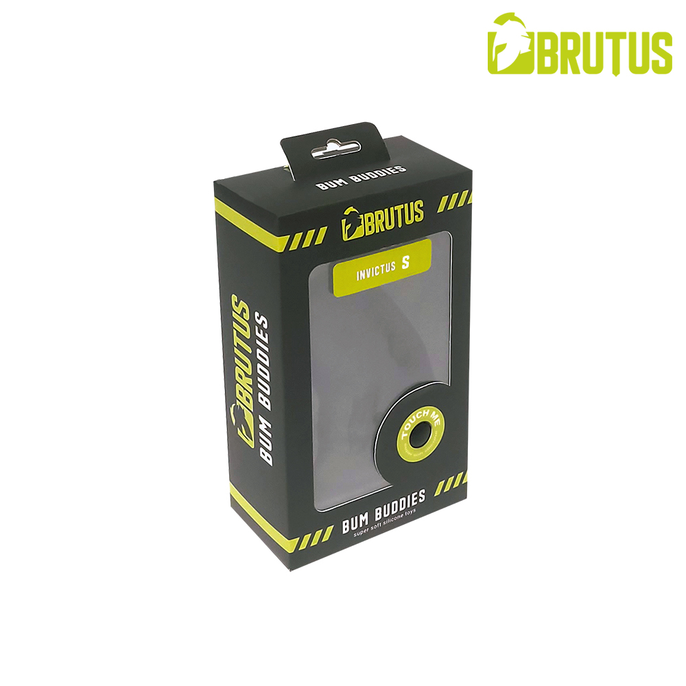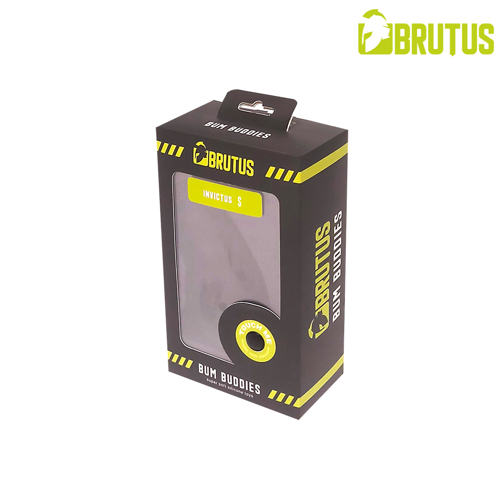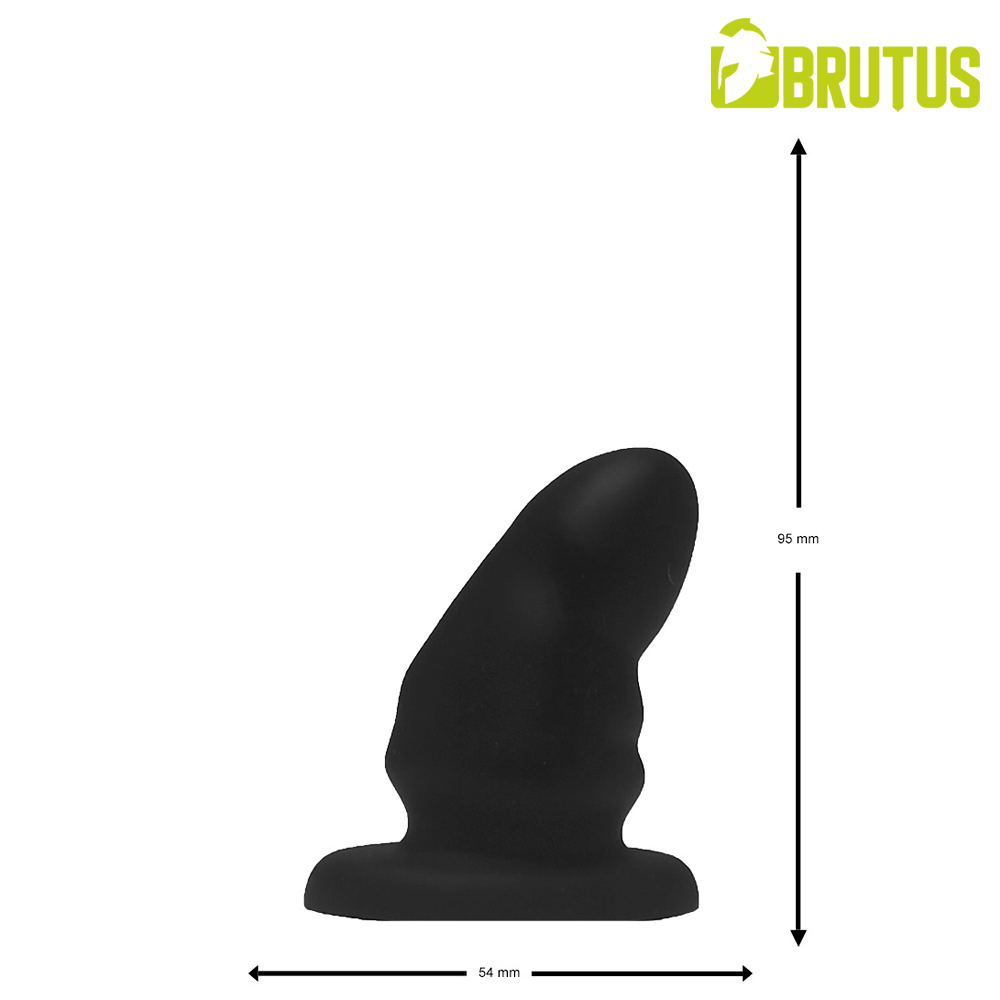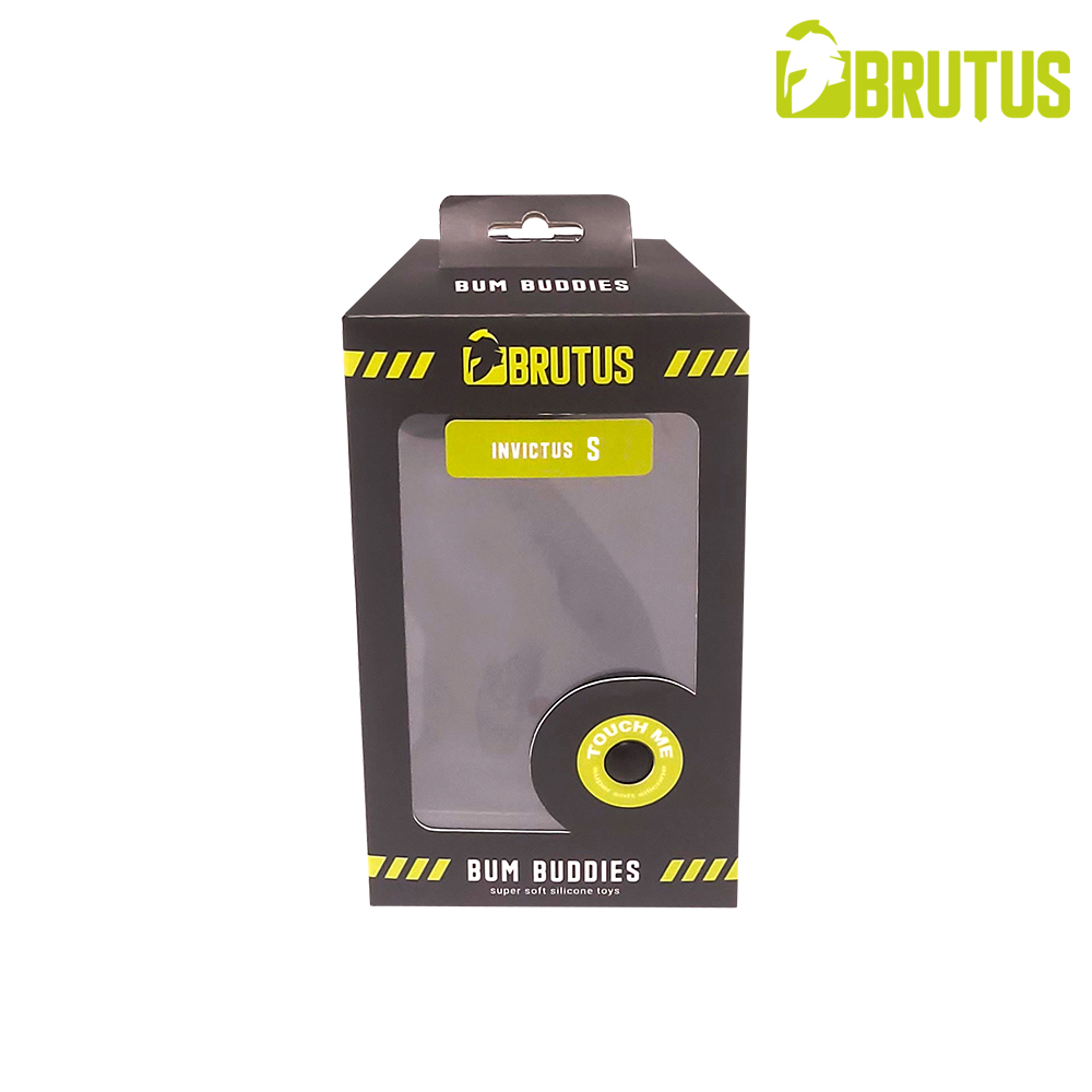 The BRUTUS BUM BUDDIES-line consists of several stimulating models, with each model coming in several sizes. This is INVICTUS with the shape of a curved butt plug, with the curve aimed to stimulate the P-Spot.