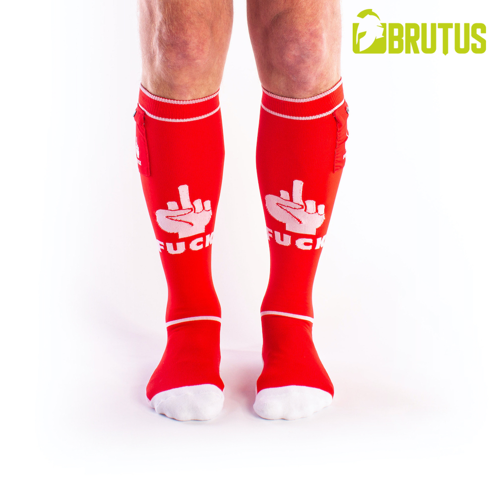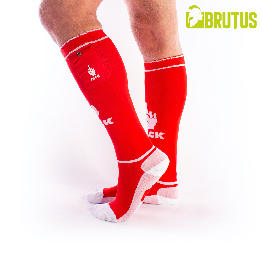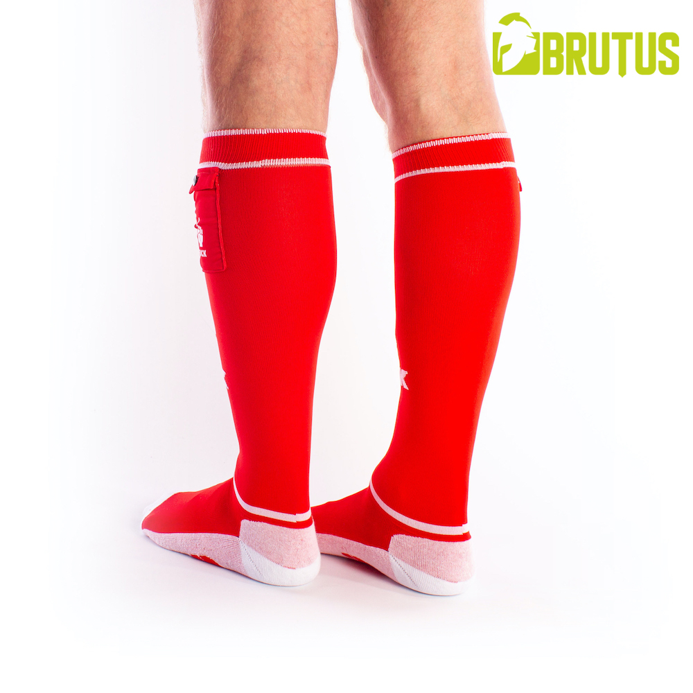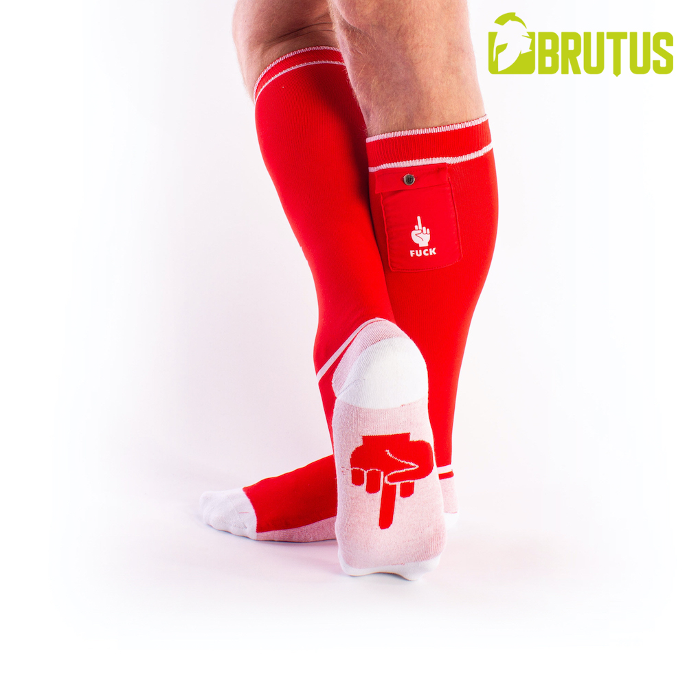 These BRUTUS Fetish Party Socks are great to wear not only at home, but also to a dance or fetish party because you can put your small belongings into the two outside pockets.