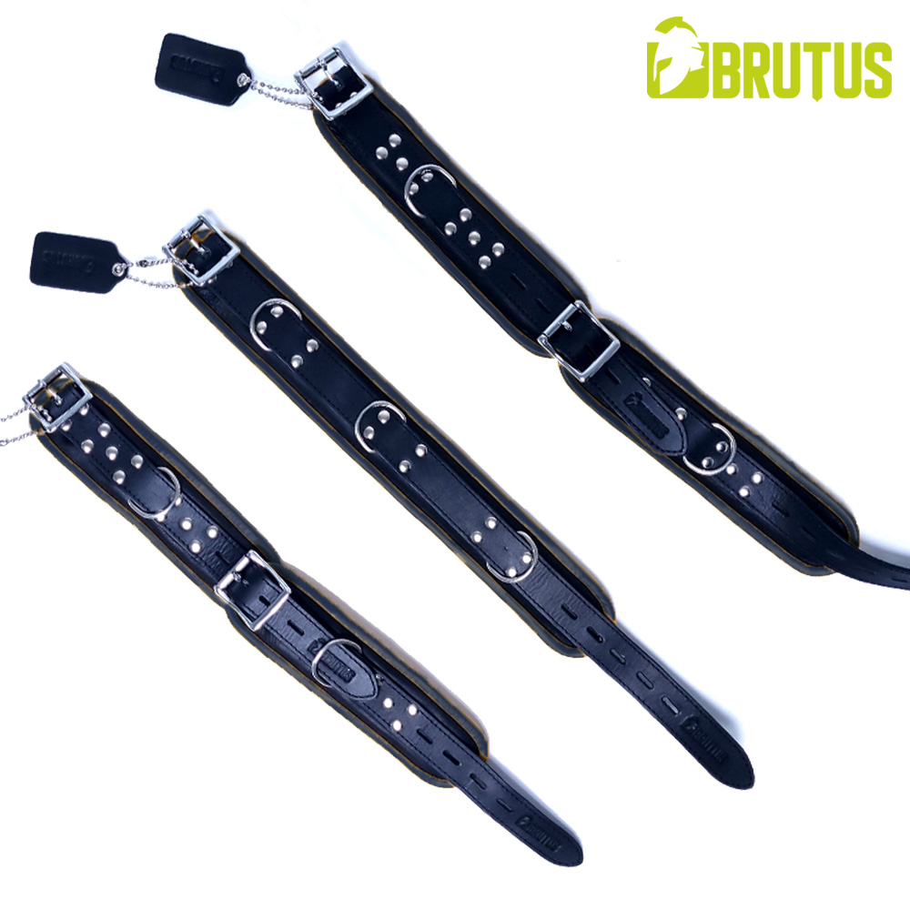 This collar features a lockable buckle (padlock not included). With 3 extra D-rings for bondage.