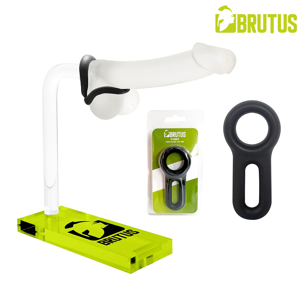 Buckle up and get creative with the Spanner by Brutus. This innovative design, made from silky smooth silicone by Brutus, allows you to use the spanner simply as cock ring, ball ring, or both at the same time! Two holes give you endless opportunities to play around and experiment with wrapping up your cock and balls. The cushiony soft material makes it feel like you are not even wearing anything, but it still gives enough grip that you need from a cock and ball ring. Play around with the two holes of the Spanner to find out which way fits best for you, we promise, it won’t disappoint.