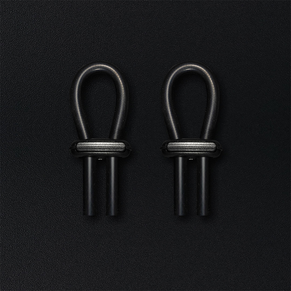 Made from custom-conductive rubber tubing, these rings are smooth, flexible, and easily adjustable to fit any girth with the integrated cord locks. The tube's inner diameter is designed to accommodate standard 2mm electrode pins, ensuring seamless compatibility with the COYOTE Power Box and other accessories.
