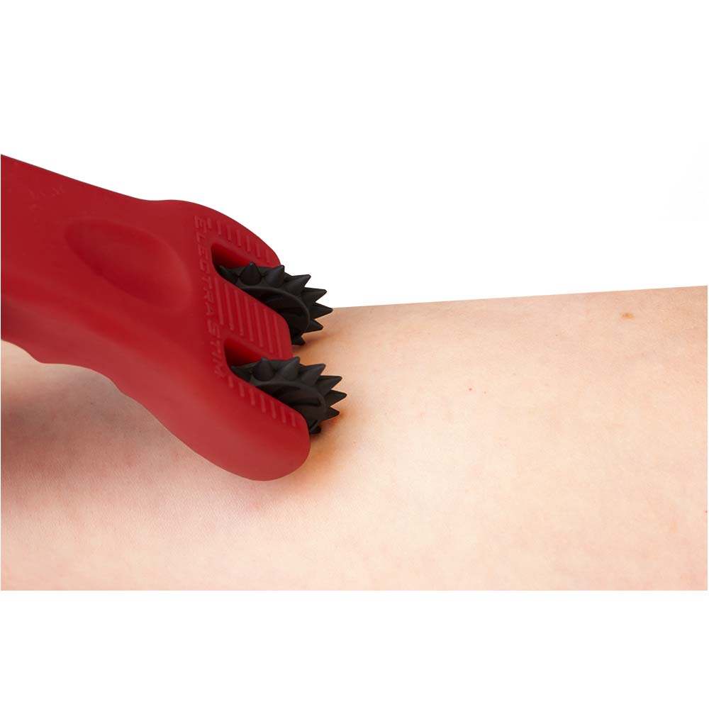 For the best sensations also apply a thin layer of gel to the skin where you want to play. Simply roll the wheel back and forth; as the spikes of the wheel become more coated with gel you will experience a variety of pleasurable changes in stimulation. Control the power and patterns with your stimulator unit (sold separately).