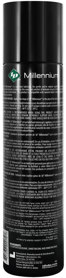 Manufactured using high-quality silicone, ID Millennium is sure to stay slippery for as long as you need it to. Its slip is so strong and long-lasting that it will even maintain this amazing slipperiness while under water. This gives you far many more options when you decide to go on a more adventurous escapade. Safe to use with latex you can fully enjoy this product while playing with your favorite toys. The formula also enhances masturbation for a far more enjoyable experience. The versatility of our silicone-based formula allows for a wide range of application during intimate sessions.