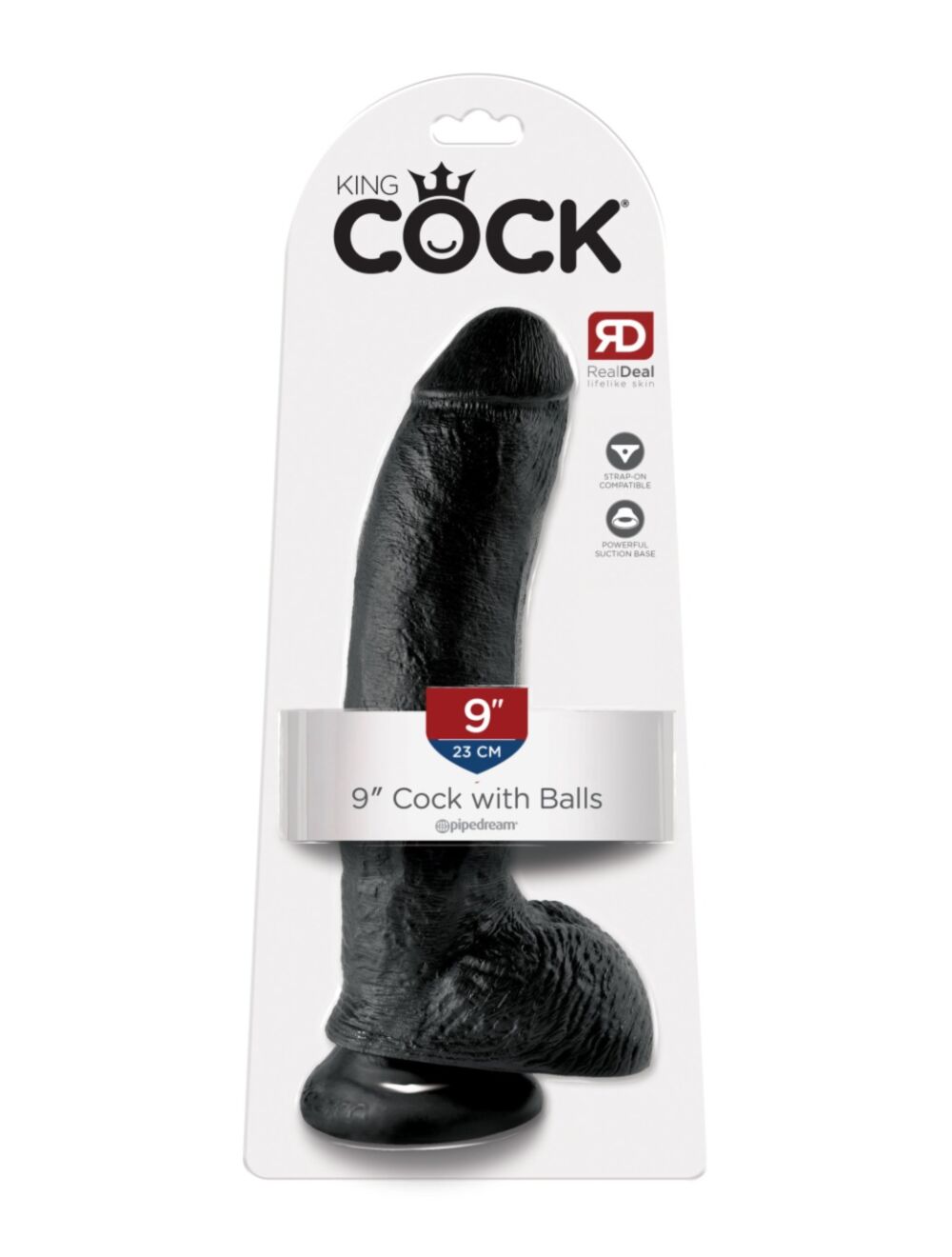 The King Cock with Balls Black 9” Dildo is the hard-dicked dream you’ve been waiting for. The king is very realistic, with a hot veiny shaft, plump balls, and detailed head - you’ll probably want to put it in your mouth.