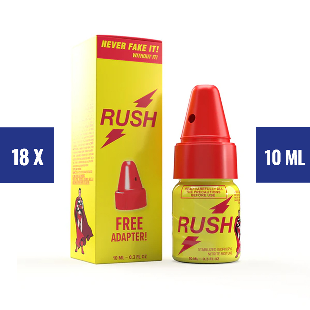 The one and only RUSH 10ml bottle with a free adapter.For packs of 18 pieces.Limited time offer.