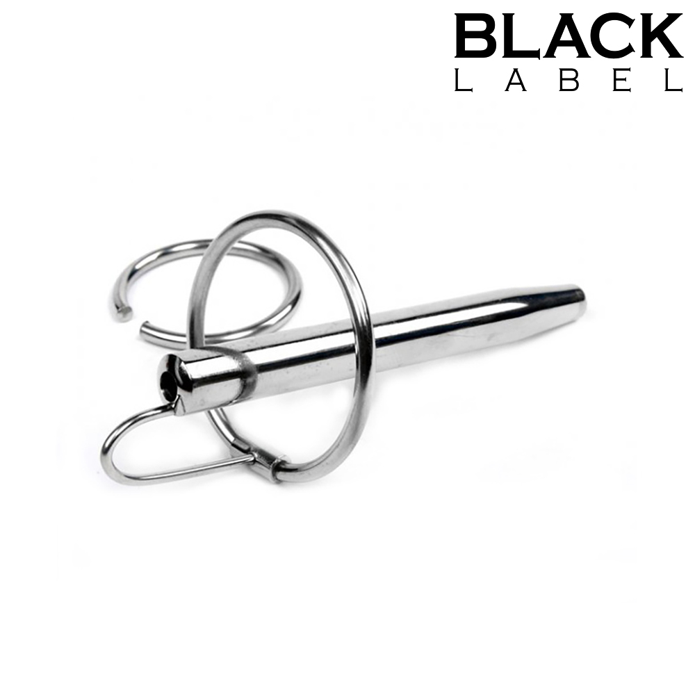 The perverse basis for this product is a 7.5 cm (3inch) long, carefully crafted stainless steel rod with a conical point and a diameter of 8 mm (1/3inch). In contrast to conventional prince's wands, this one is attached by means of a removable glans ring. The unique characteristic of this new design is the offset shackle, which connects the glans ring and wand. This provides space for a fine hole completely through the prince's wand, which allows the wearer to urinate and ejaculate. Just large enough that this is possible with a little effort and a bit of torture. This makes the orgasm or peeing a unique, much more intensive experience (naturally, the active participant can also plug the hole