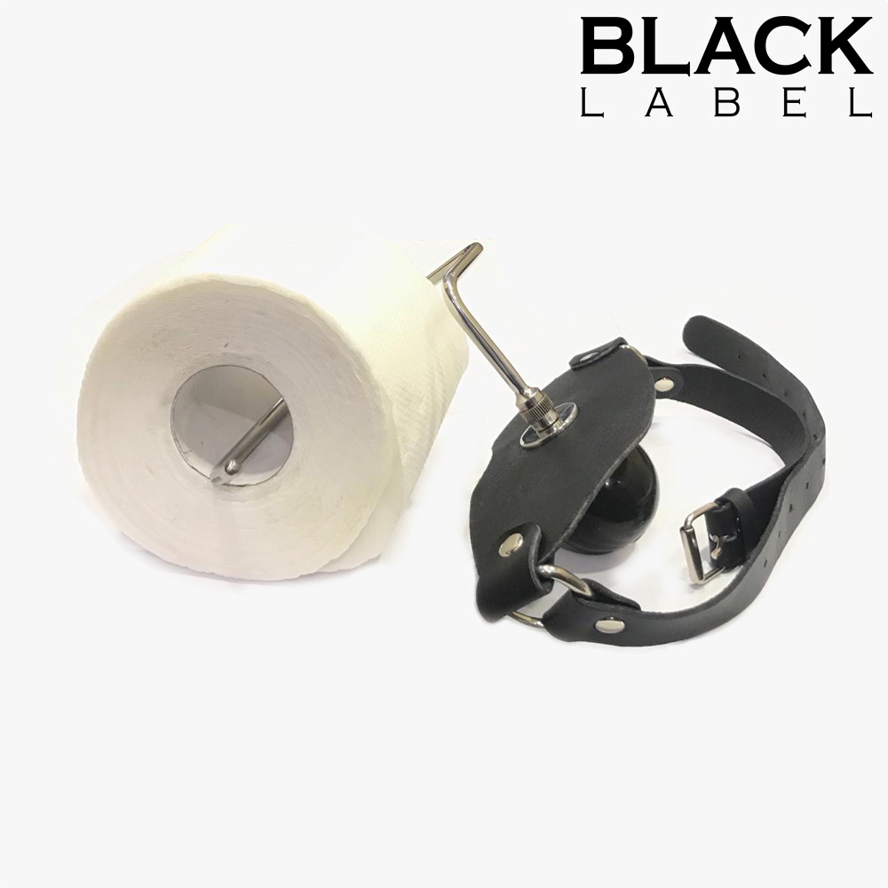 Luxury Ball Gag with stainless steel toilet roll holder, silicone ball 4,5 cm